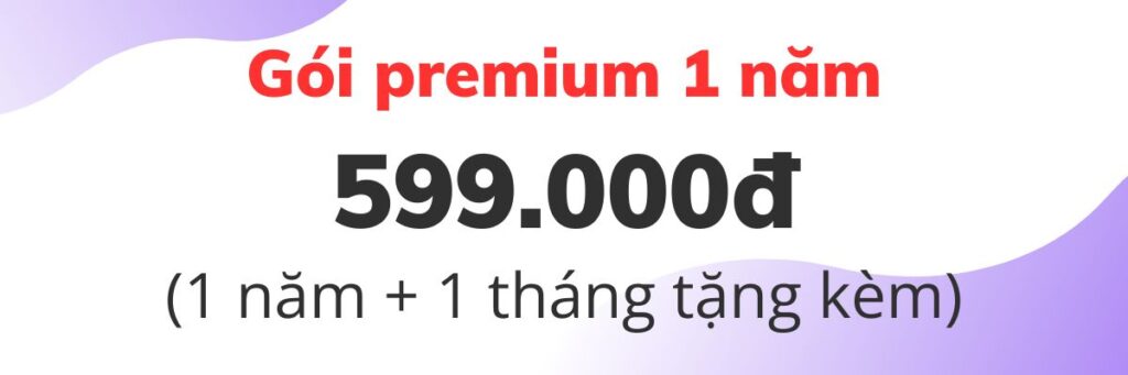 Cụ thể, khi đăng ký gói “Premium 1 năm” bằng hình thức chuyển khoản ngân hàng, bạn chỉ cần thanh toán 599K (thay vì giá gốc là 699K), và được tặng thêm 1 tháng sử dụng.