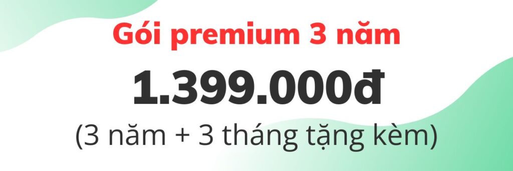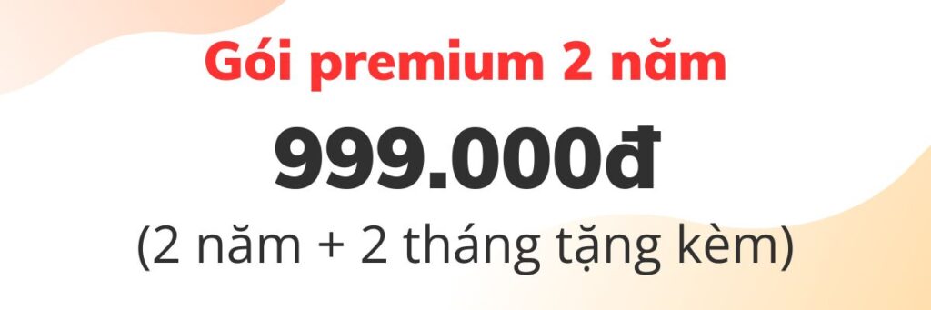 Hoặc nếu đăng ký gói “Premium 2 năm”, bạn chỉ cần thanh toán 999K và được tặng thêm 2 tháng. Với gói “Premium 3 năm”, bạn chỉ cần thanh toán 1399K và được tặng thêm 3 tháng.